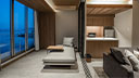 お部屋が広い洋室タイプ。ベッドはシモンズ製ダブルベッドが2台。リビングのソファに座って大きな窓から眺める海や、サンルーム兼ルーフテラスで過ごすひとときは、広々とした室内の開放感とともに格別です。電子レンジや、冷凍室と冷蔵室が分かれた大型冷蔵庫、スマートテレビも備え付けられており、長期滞在にも快適にご利用いただけます。