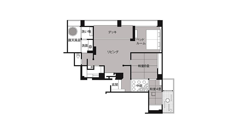 | 間取り | リビング・ベッドルーム19帖+テラス7m2+露天風呂 |